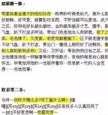 然而之后没半个月欧弟就发博,被网友解读是暗讽自己所处的环境“巨水”“全是坑”。