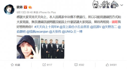 还在微博里直言“家庭”的归属感,所以是忘记了之前的口口声声的天天兄弟了么??
