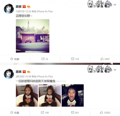 可是有心的人仔细看一下欧弟现在的日常,他近期的微博内容单一了许多,大部分是生活日常,晒娃,抱二娃,颇有佛系的姿态。